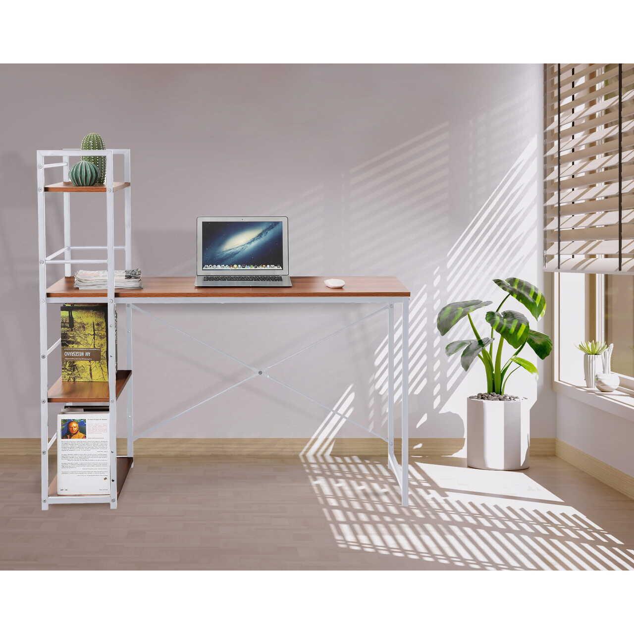 Birou calculator, Jumi, pal melaminat, otel, 3 rafturi, natur si alb, 120x52x120 cm