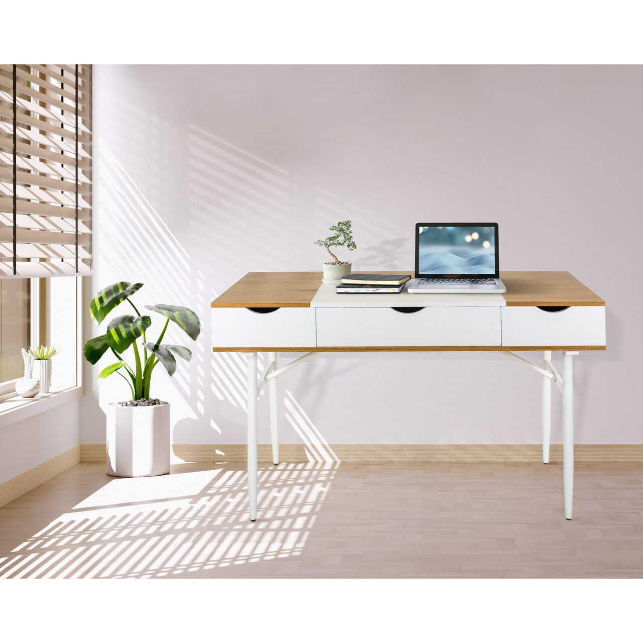 Birou calculator, Jumi, placa MDF, otel, cu sertar, compartimente interioare, alb si natur, 120x60x77 cm - Birouri - Mercaton Store