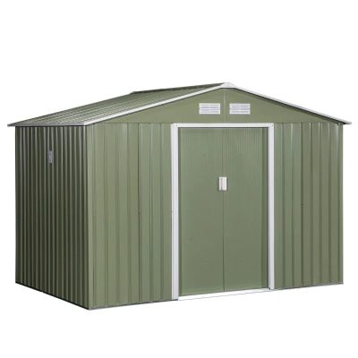 Casuta/magazie/sopron de gradina pentru depozitare unelte, cu structura baza inclusa, otel si PP, verde kaki, 277x195x192 cm