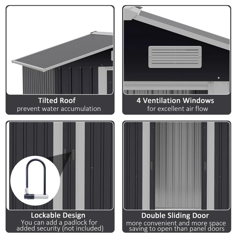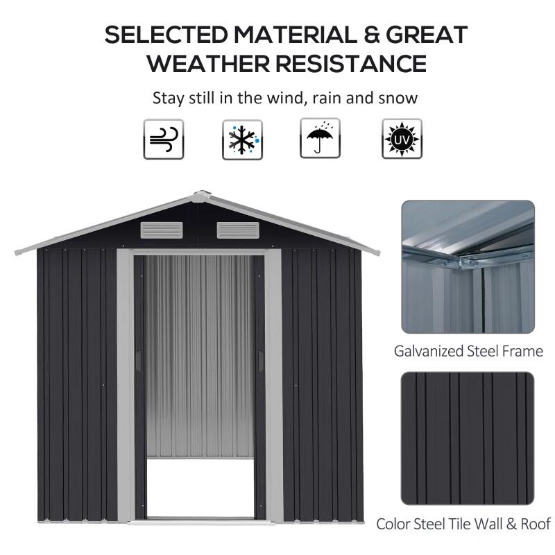 • Dispune de doua usi glisante pentru acces facil in interior, corespunzator cu spatiul larg pe care magazia il ofera.