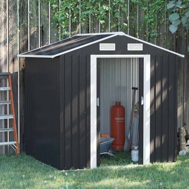 Casuta/magazie/sopron de gradina pentru depozitare unelte, otel, negru, 195x153x188 cm