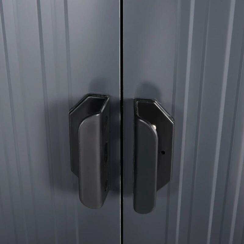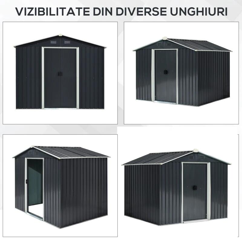 • Dispune de doua usi glisante pentru acces facil in interior, corespunzator cu spatiul larg pe care magazia il ofera.