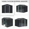 Fii primul care scrii o recenzie pentru „Casuta/magazie/sopron de gradina pentru depozitare unelte, otel si PP, negru, 236x174x190 cm”