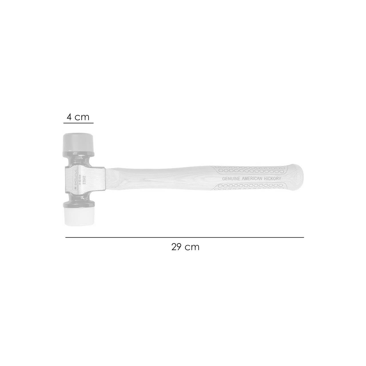 Ciocanul este echipat cu doua cauciucuri (dur si moale) cu un diametru de 40 mm. Cauciucurile pot fi usor desurubate si schimbate cand se uzeaza.