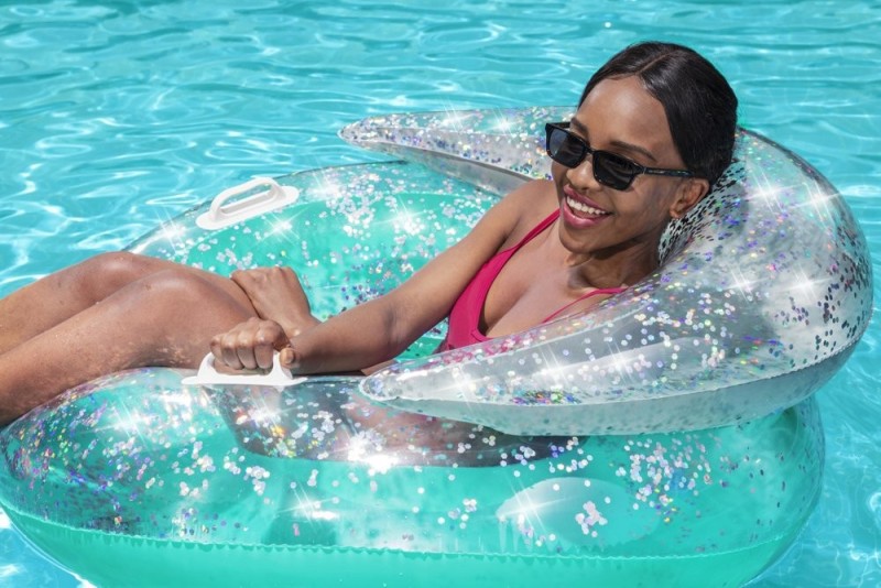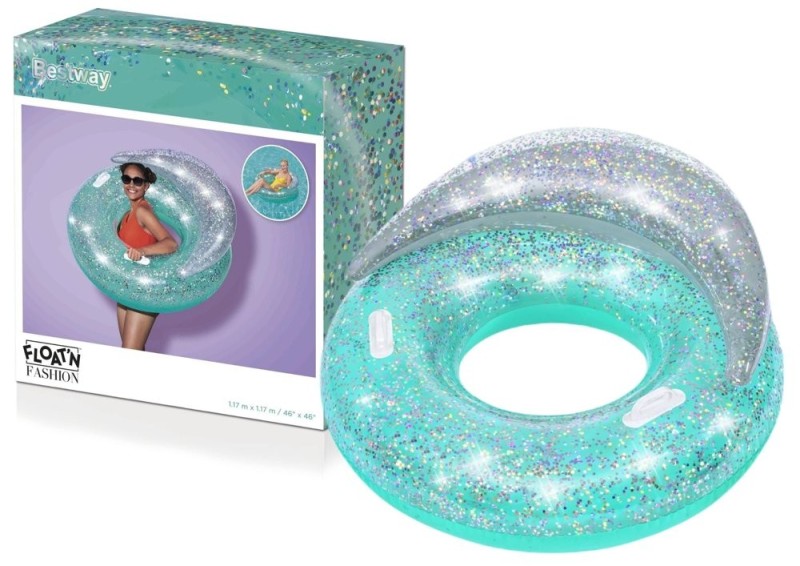Colac gonflabil cu spatar si sclipici pentru inot, copii 14 ani+, Bestway MCT 43509, 117 x 117 cm, turcoaz