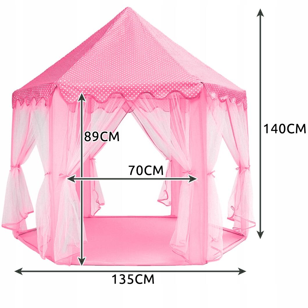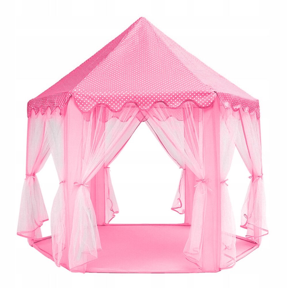 Cort de joaca pentru copii, Kruzzel, hexagonal, cu perdele, roz, 135×140 cm