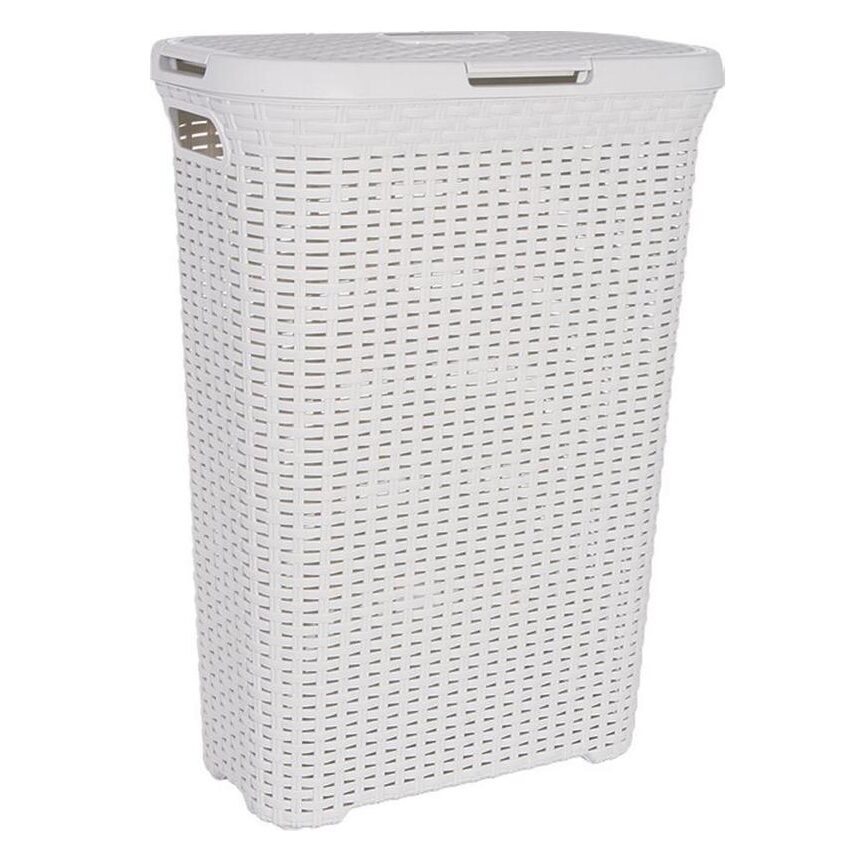 Cos rufe, Curver, 2 manere, cu capac, plastic, crem, 40 L, 45×26.5×61.5 cm