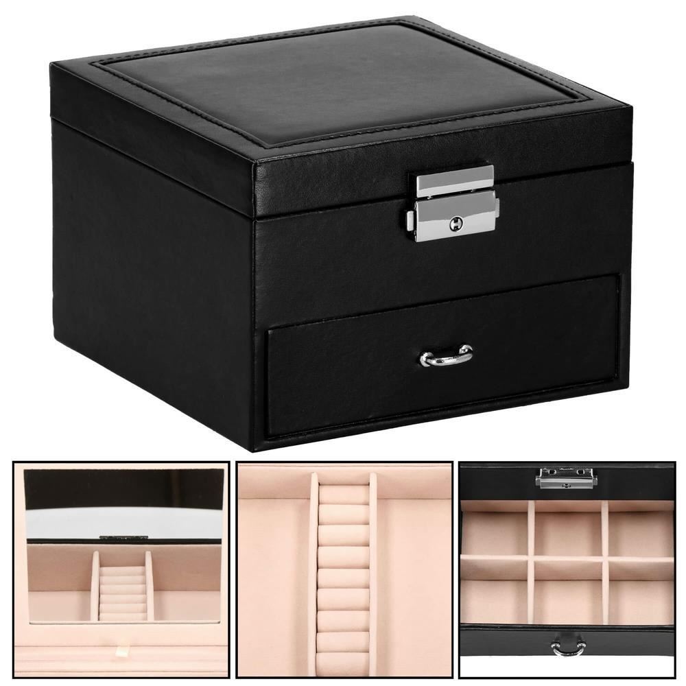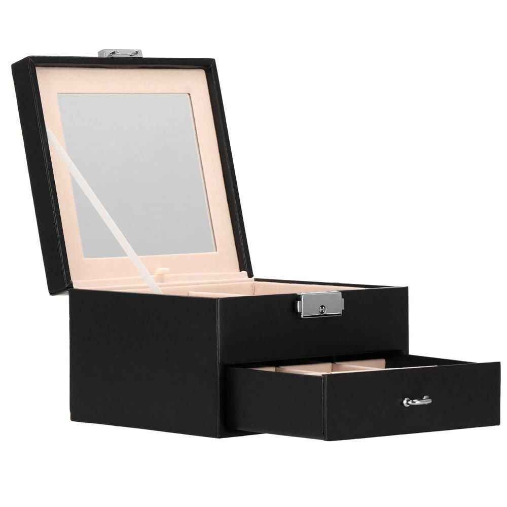 Cutie pentru bijuterii, catifea si piele ecologica, negru si roz, cu oglinda, 16x16x11 cm, Springos