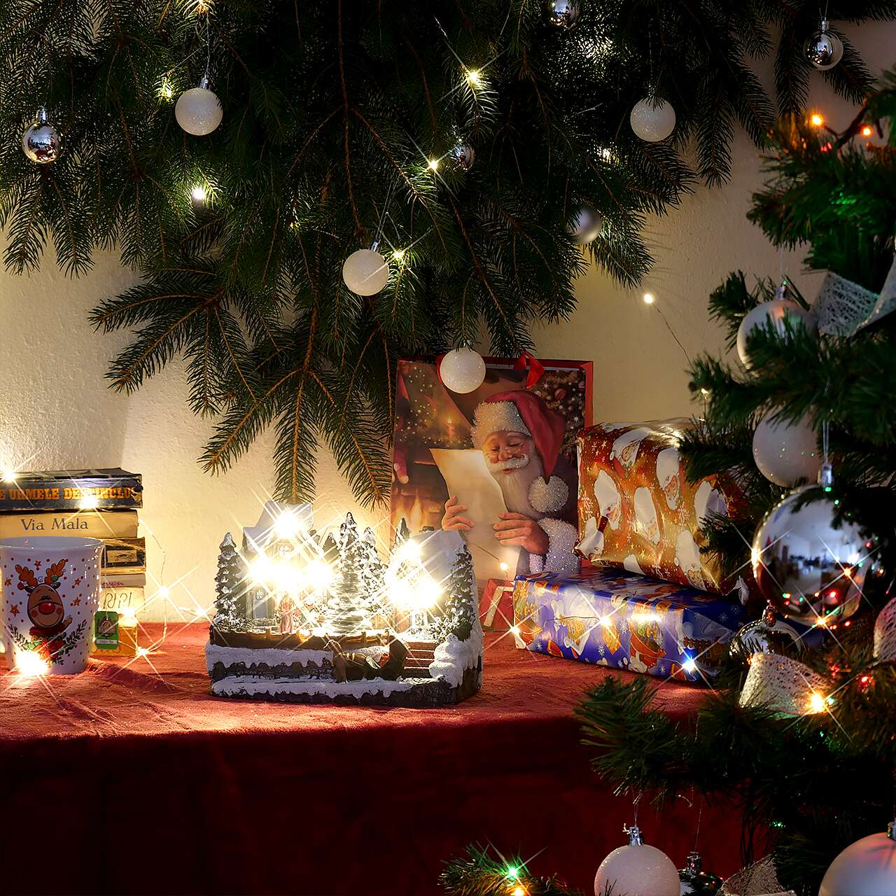 Decoratiune Craciun, polirasina, Sat de Craciun, cu brazi si caleasca, LED, 3xAA, 22x16x15 cm, Magic Home - Decoratiuni de craciun - Mercaton Store
