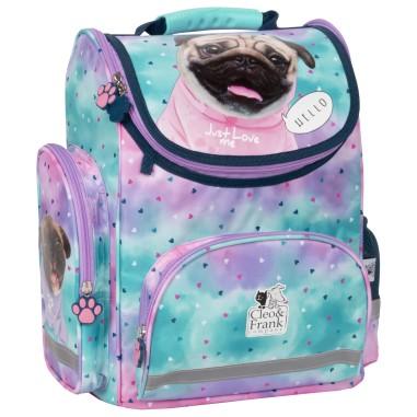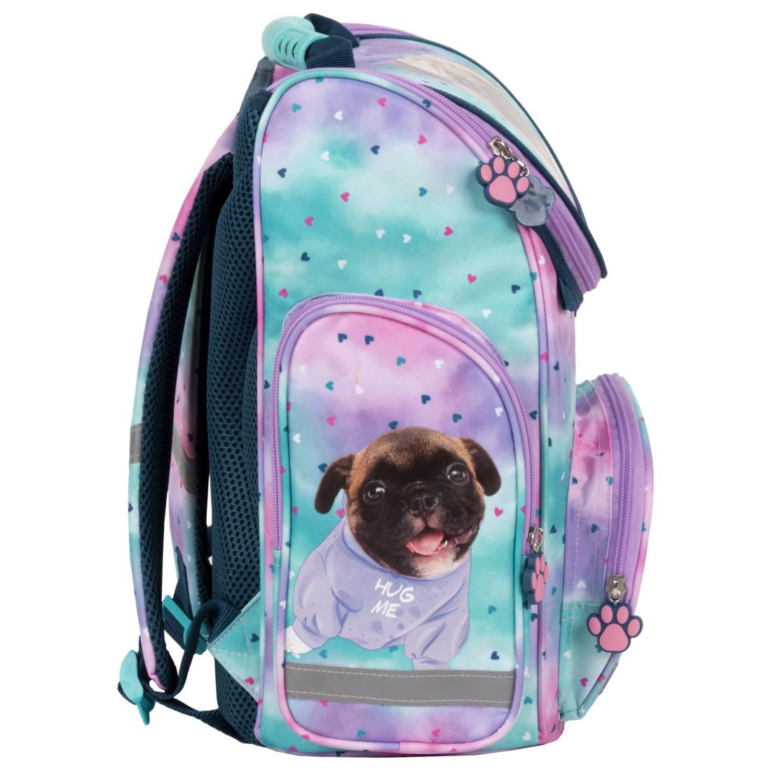 Ghiozdan ergonomic de fetite, pentru scoala, Derform, 3 compartimente, model catel Cleo si Frank TEMBCF36