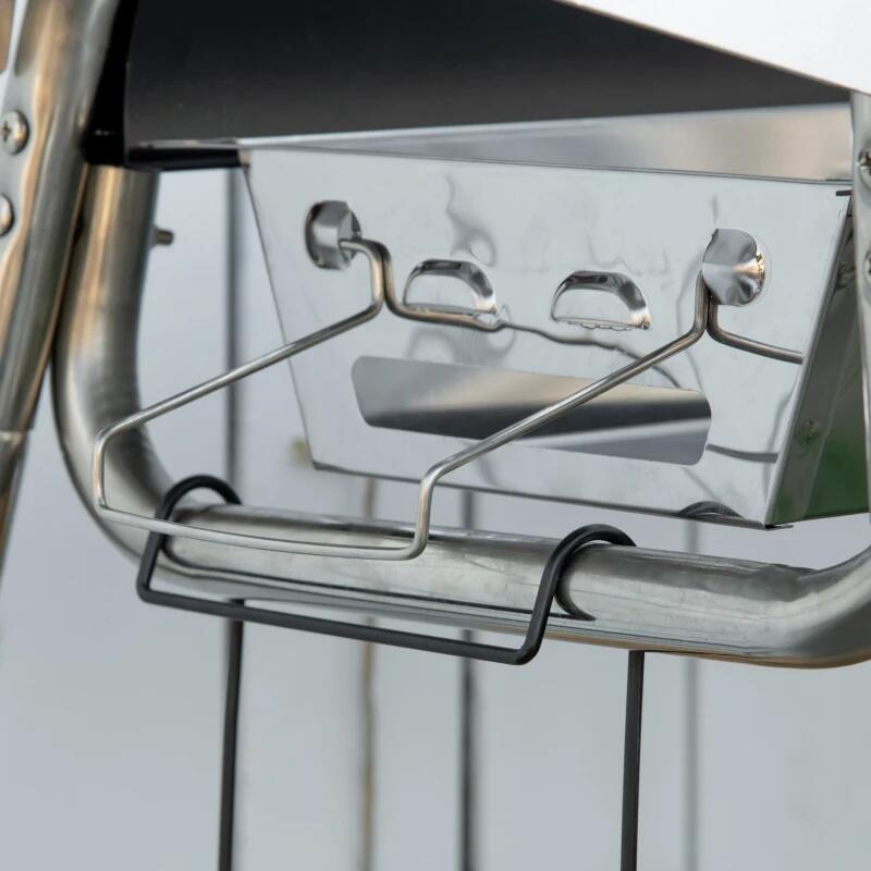 • Este usor de instalat si rapid de demontat, avand picioarele detasabile. A fost creat compact tocmai pentru a putea fi transportat si depozitat cat mai facil, astfel incat sa va puteti bucura de beneficiile gratarului oriunde si oricand. Suporturile reglabile pentru picioare mentin stabilitatea si previn zgarieturile care se pot produce, de exemplu, pe un teren asfaltat sau pietruit.