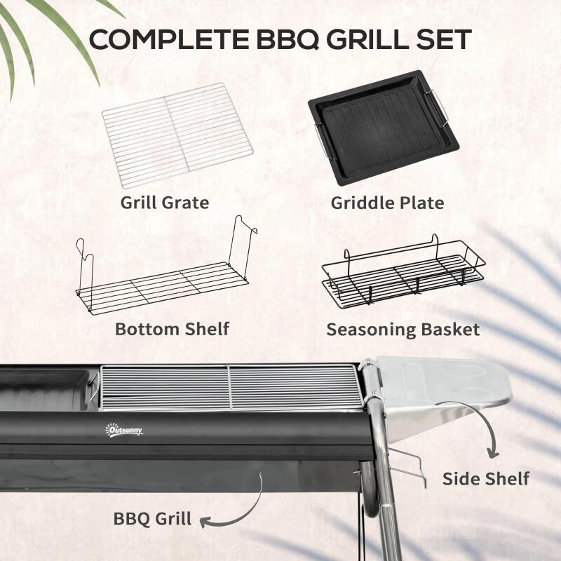 Gratar gradina/camping cu carbuni, portabil, grill dreptunghiular, cu rafturi, structura inox, 96x61x72 cm