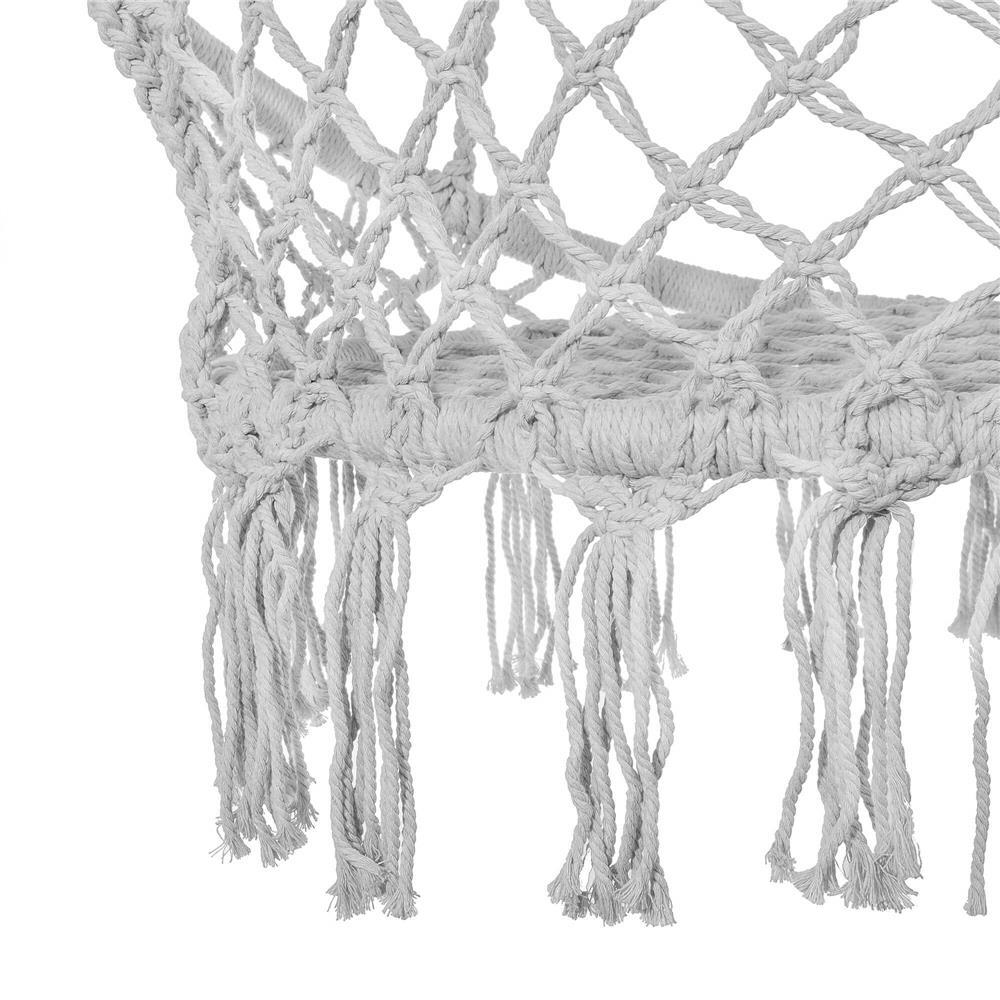 • Franjuri la moda in stil boho, o culoare frumoasa si o tesatura din franghie confera leaganului suspendat un aspect uimitor. Corzile impletite estetic si cercurile groase acoperite cu acestea asigura durabilitate, confort si o constructie pe cat de usoara, pe atat de solida si rezistenta.