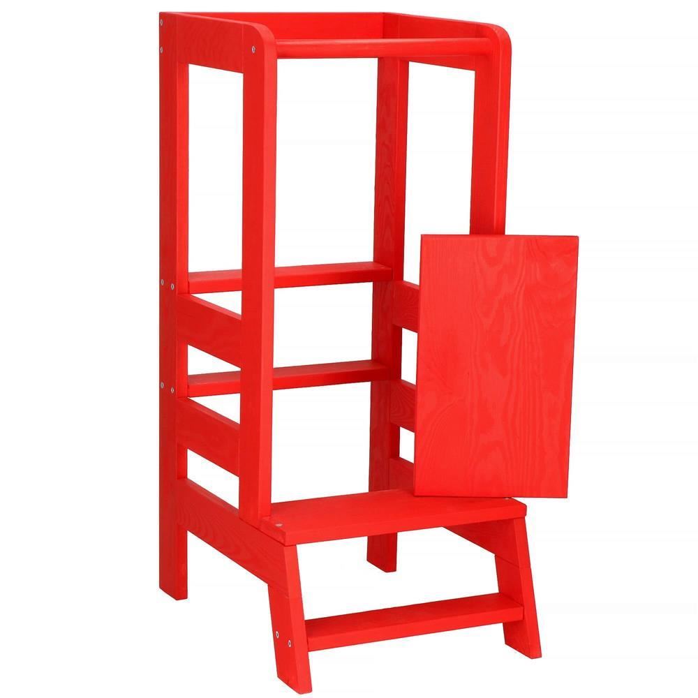 Inaltator multifunctional/ajutor de bucatarie pentru copii, ajustabil, lemn, rosu, 39x52x90 cm, Springos