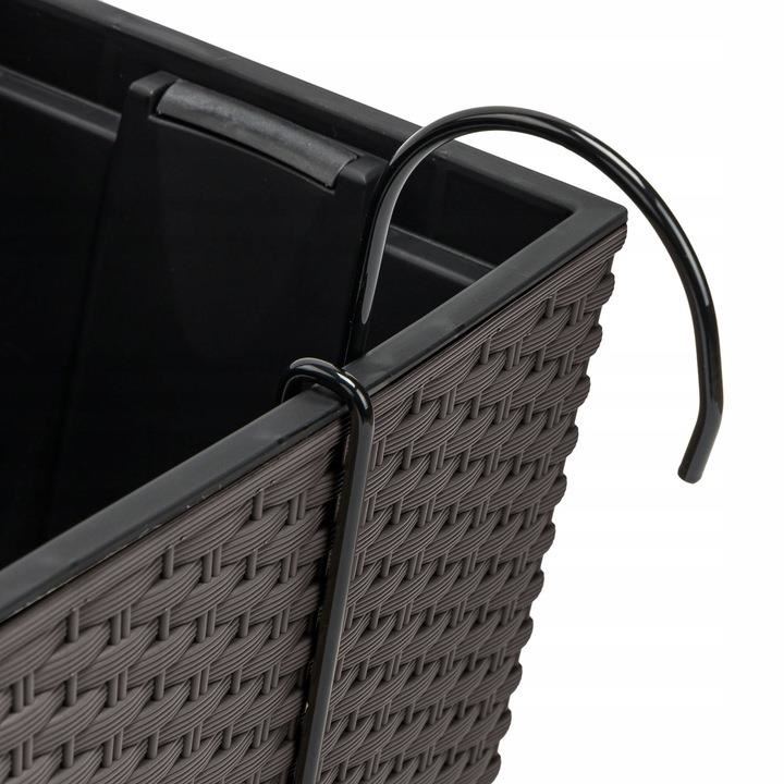 Jardiniera decorativa, suport metalic, imitatie ratan, maro, 58x18x19.5 cm, Rato Case W