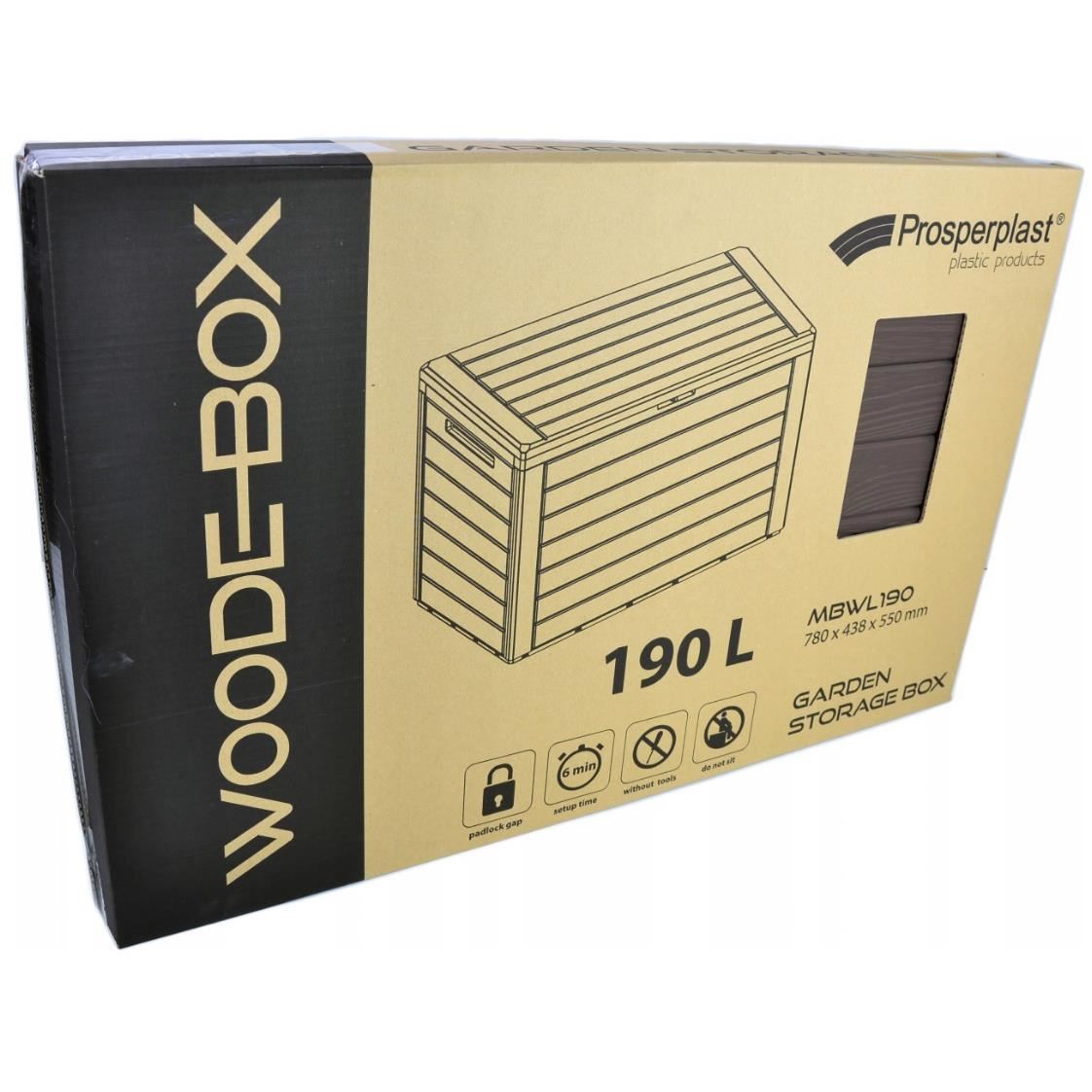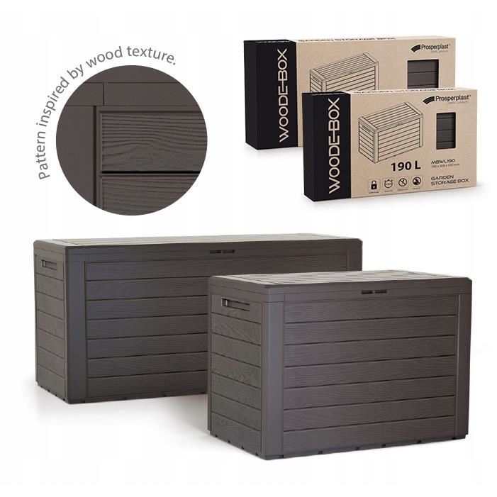 Lada de depozitare este spatioasa si este realizata din plastic de inalta calitate, care imita perfect lemnul natural.