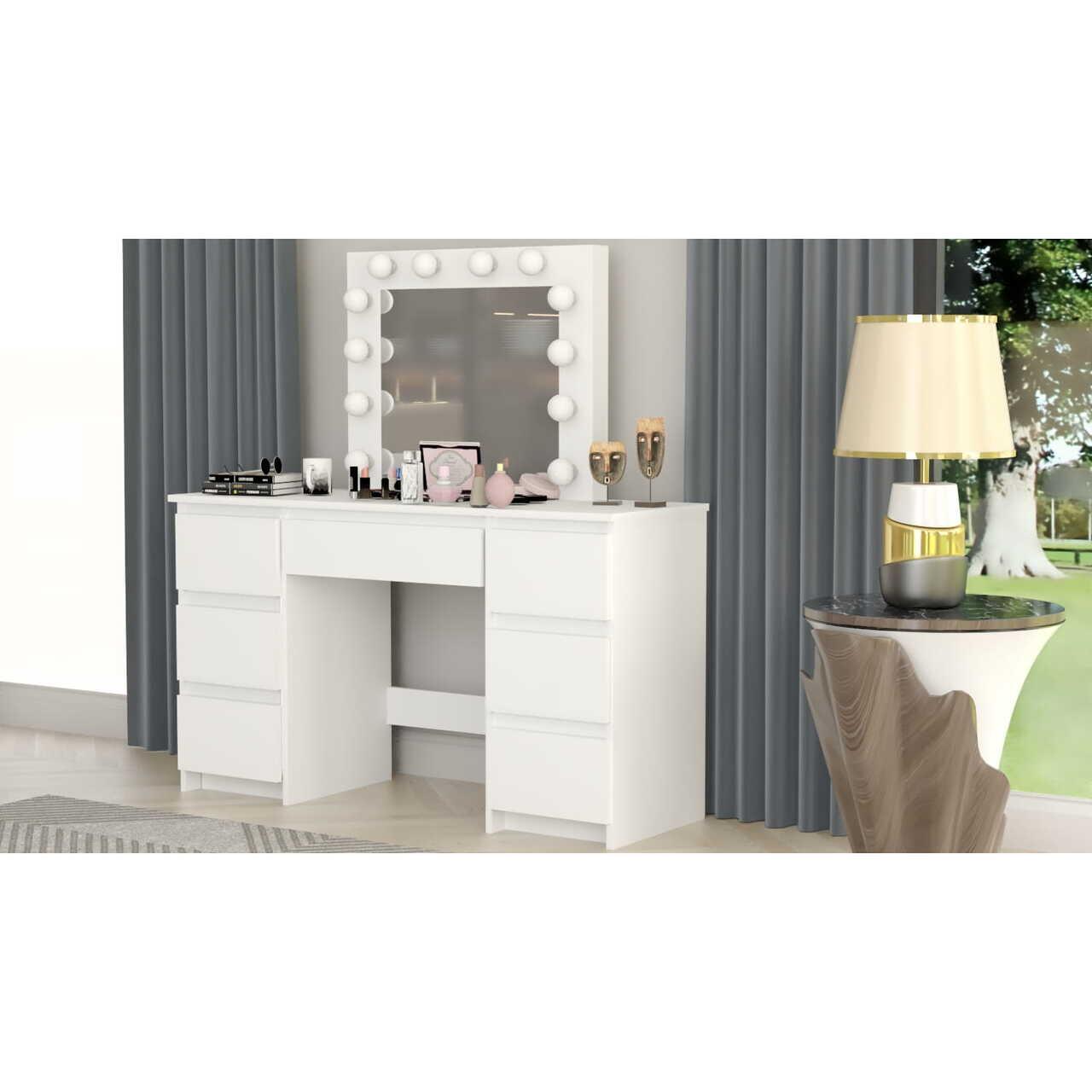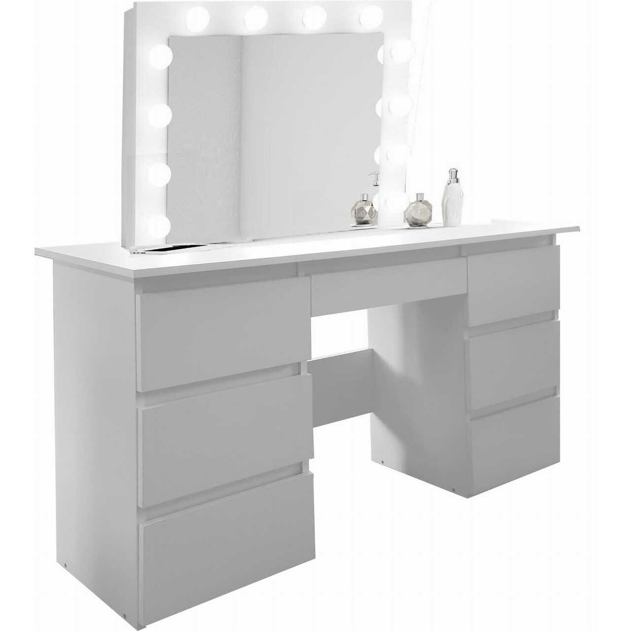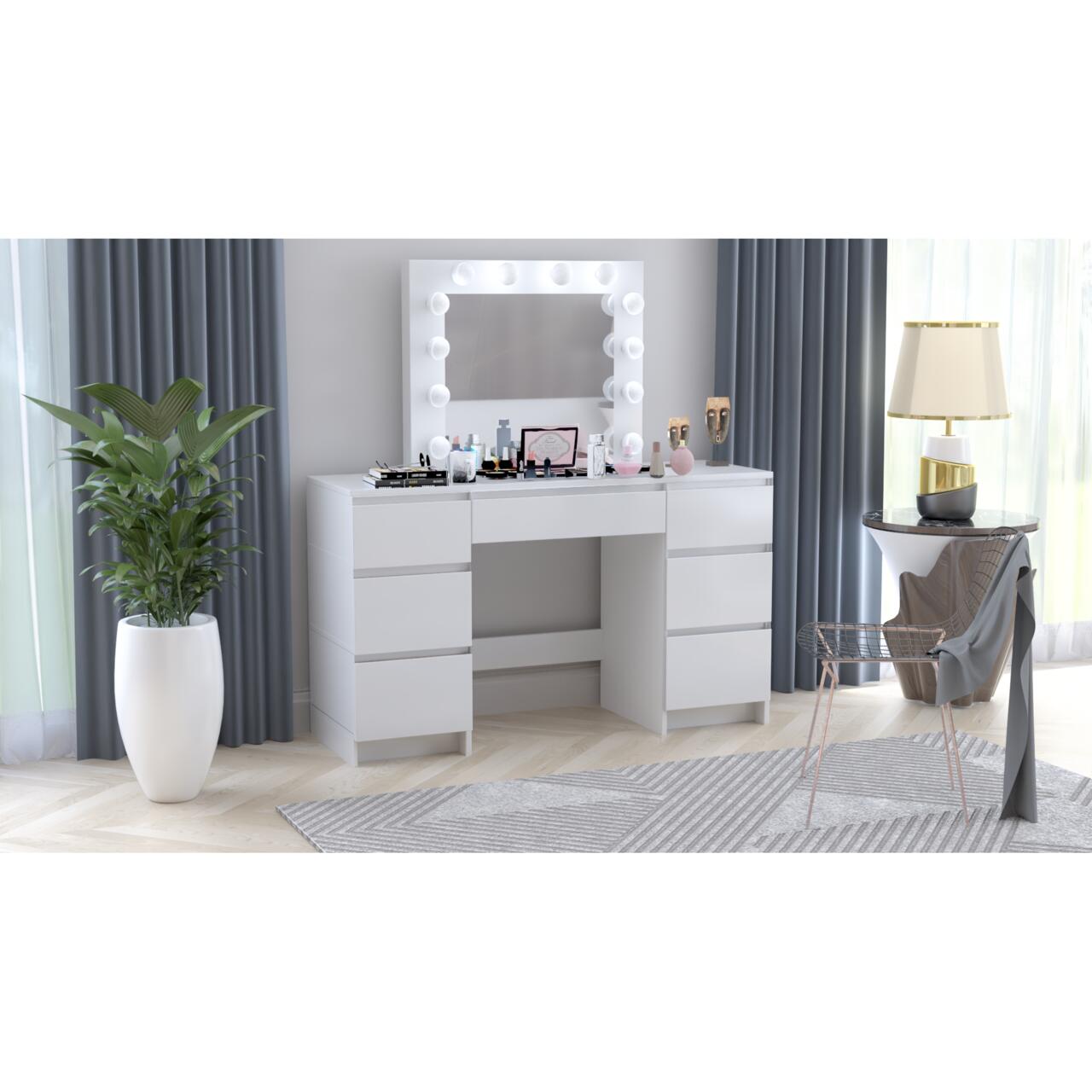 Masa de toaleta/machiaj, alb lucios, cu oglinda si LED-uri, Vanessa, 130x43x143 cm - Masute de toaleta - Mercaton Store