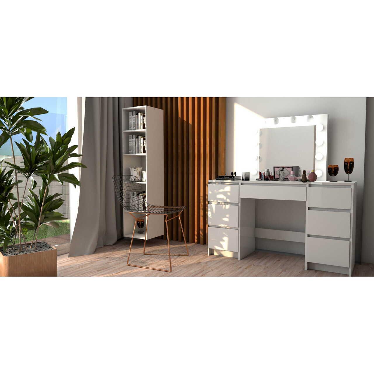Fii primul care scrii o recenzie pentru „Masa de toaleta/machiaj, alb lucios, cu oglinda si LED-uri, Vanessa, 130x43x143 cm”