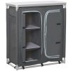 Mobilier camping, portabil, aluminiu, poliester, masa blat MDF, impermeabil, 3 rafturi, dulap, max 45 kg, 96×49.5×104 cm