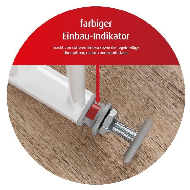 – Indicatorul colorat pentru instalare arată dacă poarta este fixată cu presiunea corectă pe tocul ușii sau dacă prinderea este prea slabă.
