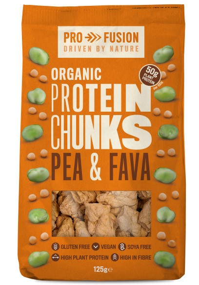 Proteina vegetala texturata din mazare si fava bucati mari, bio, 125g Profusion
