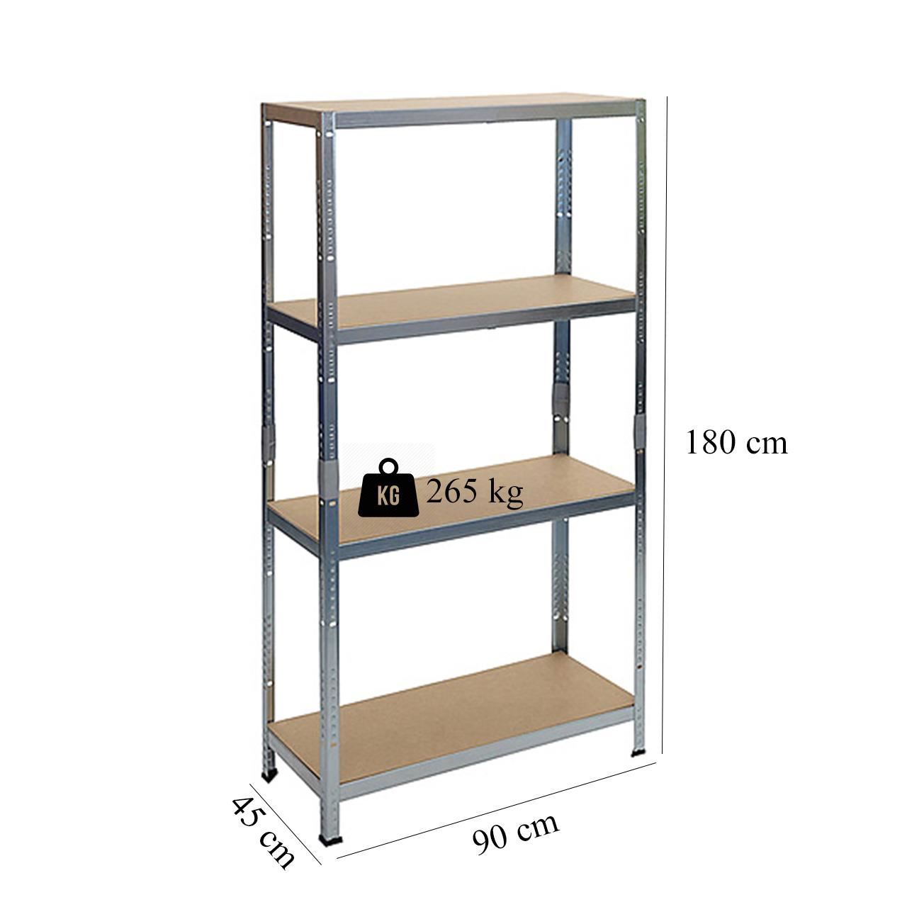 Raft depozitare, metalic, 4 polite, 265 kg, 90x45x180 cm