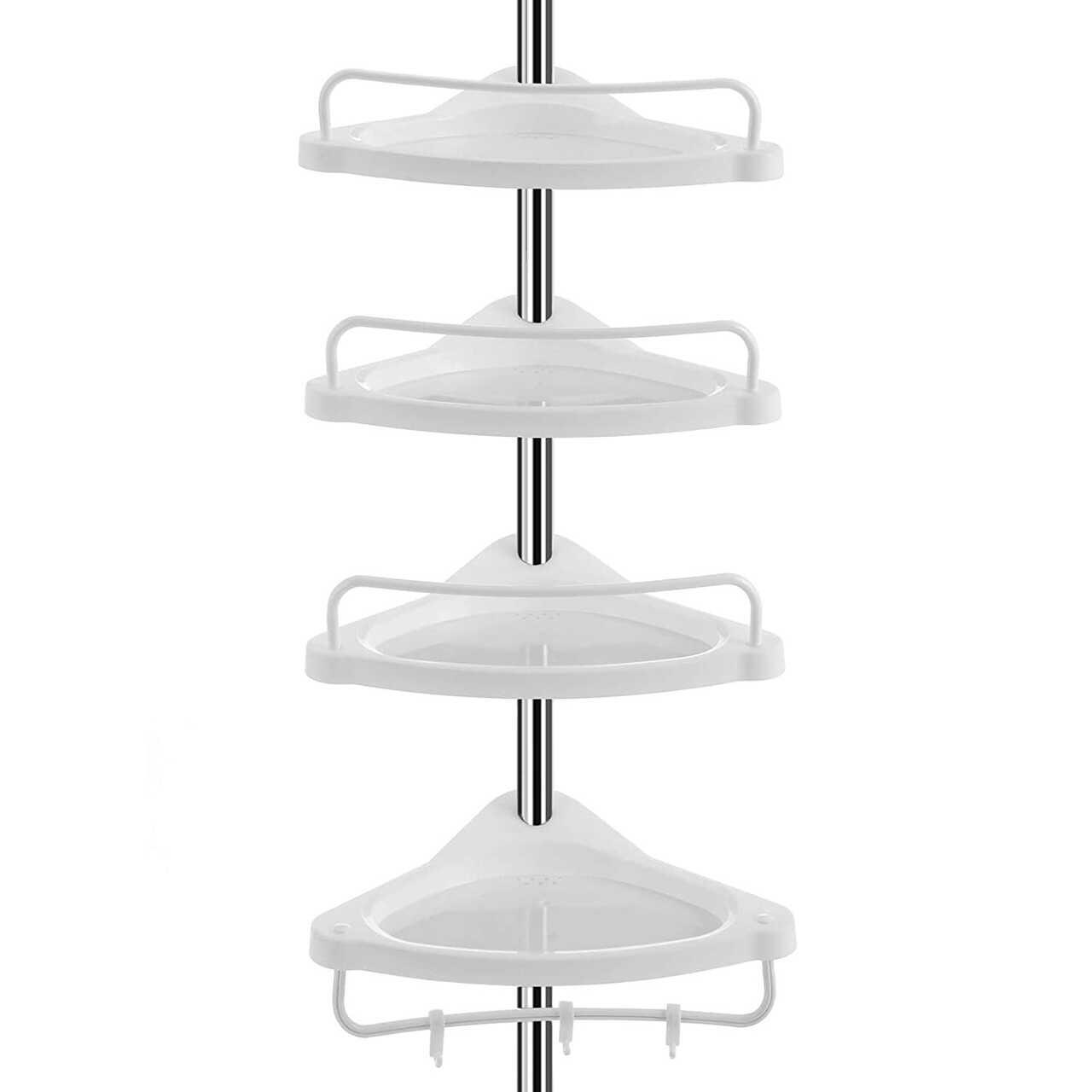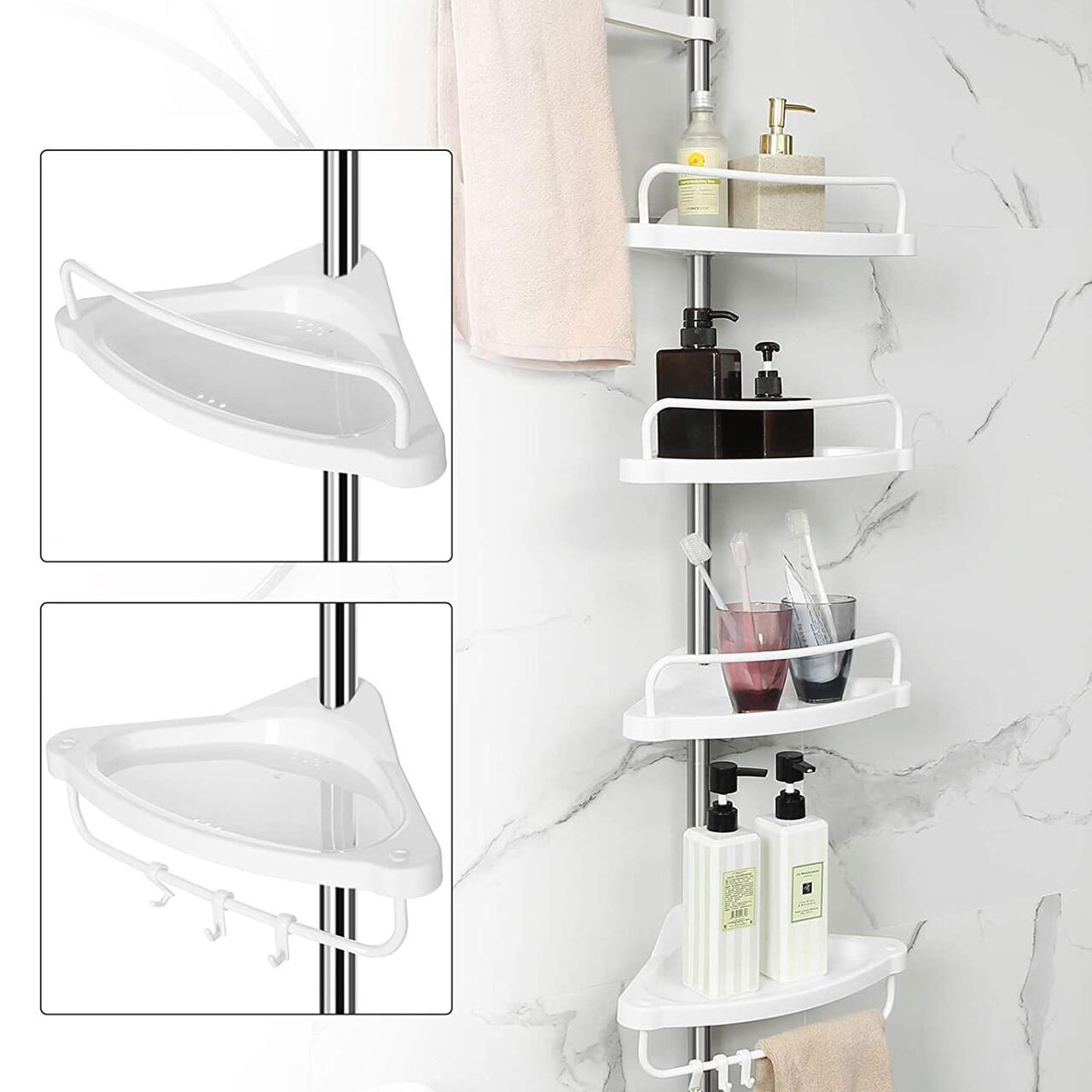 Raft pentru baie/dus, Vasagle, reglabil, otel, 4 rafturi, cuier, 95-300 cm