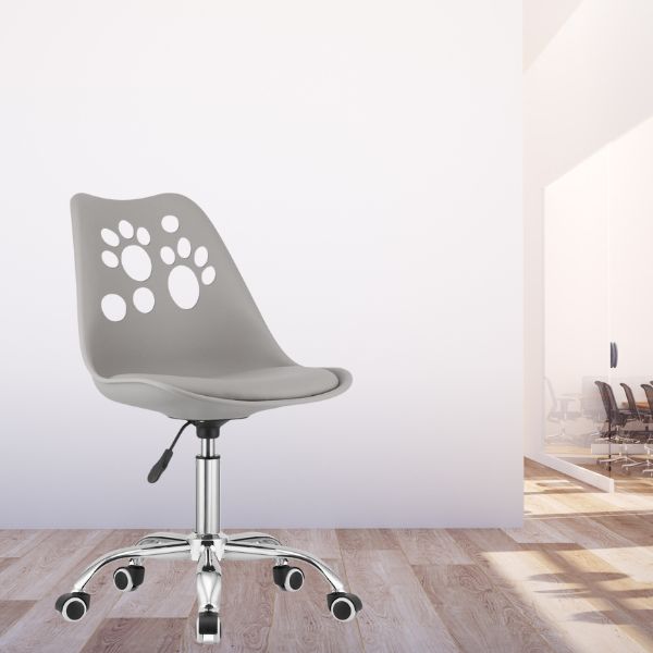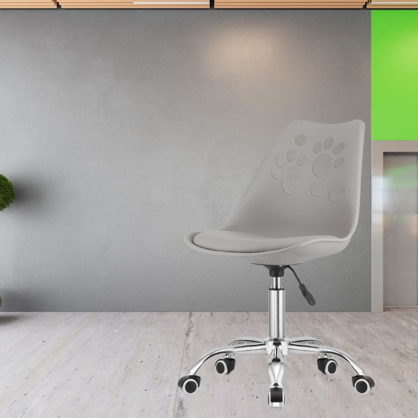 Scaun Rotativ de Birou Pivotant – Rotire 360°, Reglabil Pe Inaltime, PP, Piele Ecologica, Gri