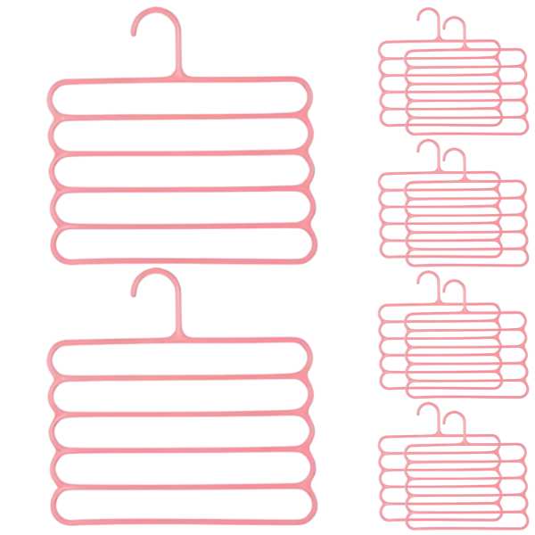 Set 10 Umerase Mercaton din Plastic, cu 5 Pozitii, Pentru Pantaloni, Fuste sau Cravate, 31 x 31 cm, Roz