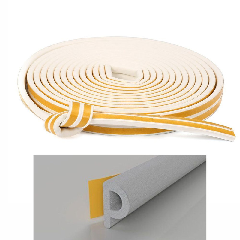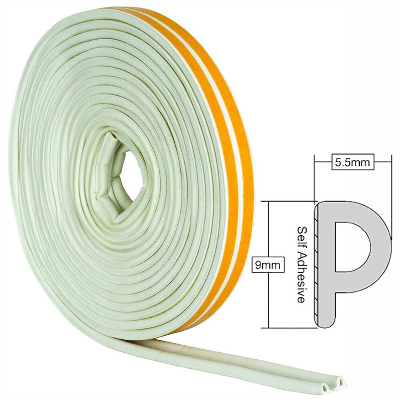 Set 3 buc, Banda autoadeziva pentru etansarea usilor si ferestrelor, Profil P, 9mm x 5.5mm, Rezistenta UV, Cauciuc EPDM, 6 m, Alb