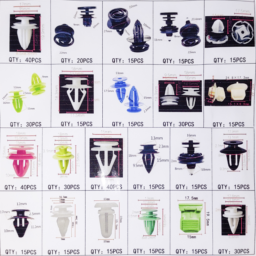 Aceasta varietate extinsa de cleme acopera o gama larga de nevoi in ceea ce priveste reparatiile auto. Indiferent daca trebuie sa lucrezi la caroseria masinii, la interior sau la alte componente, acest set iti pune la dispozitie instrumentele potrivite.