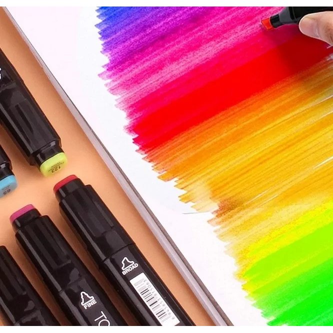 Setul de 48 markere cu alcool este perfect pentru orice pasionat de desen sau artizanat. Fiecare marker are doua capete: unul gros pentru linii largi si unul subtire pentru detalii fine, oferind posibilitatea de a crea lucrari deosebite cu o gama larga de culori vibrante.