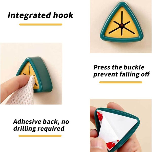 Set 5 Suporti pentru Prosop de Baie sau Bucatarie, Impermeabili si Autoadezivi cu Sistem Push Free, Montare pe Perete, 5 x 2.3 cm, Verde