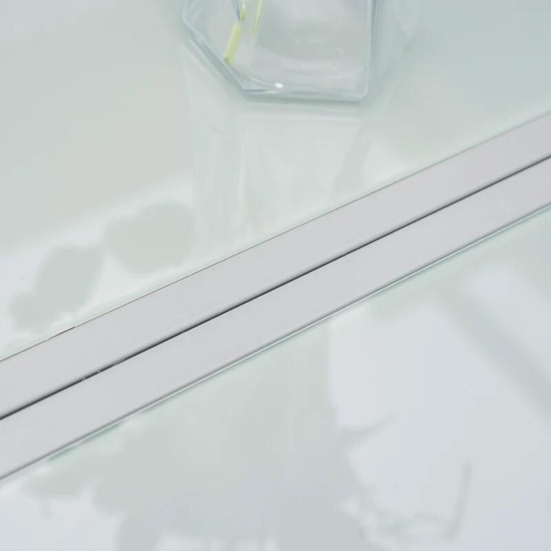 • Masa ofera un spatiu larg, astfel ca va putea gazui atat un numar mare de farfurii si alimente, dar si decoratiuni. Blatul este realizat din sticla securizata, un material de calitate care este usor de intretinut si curatat.