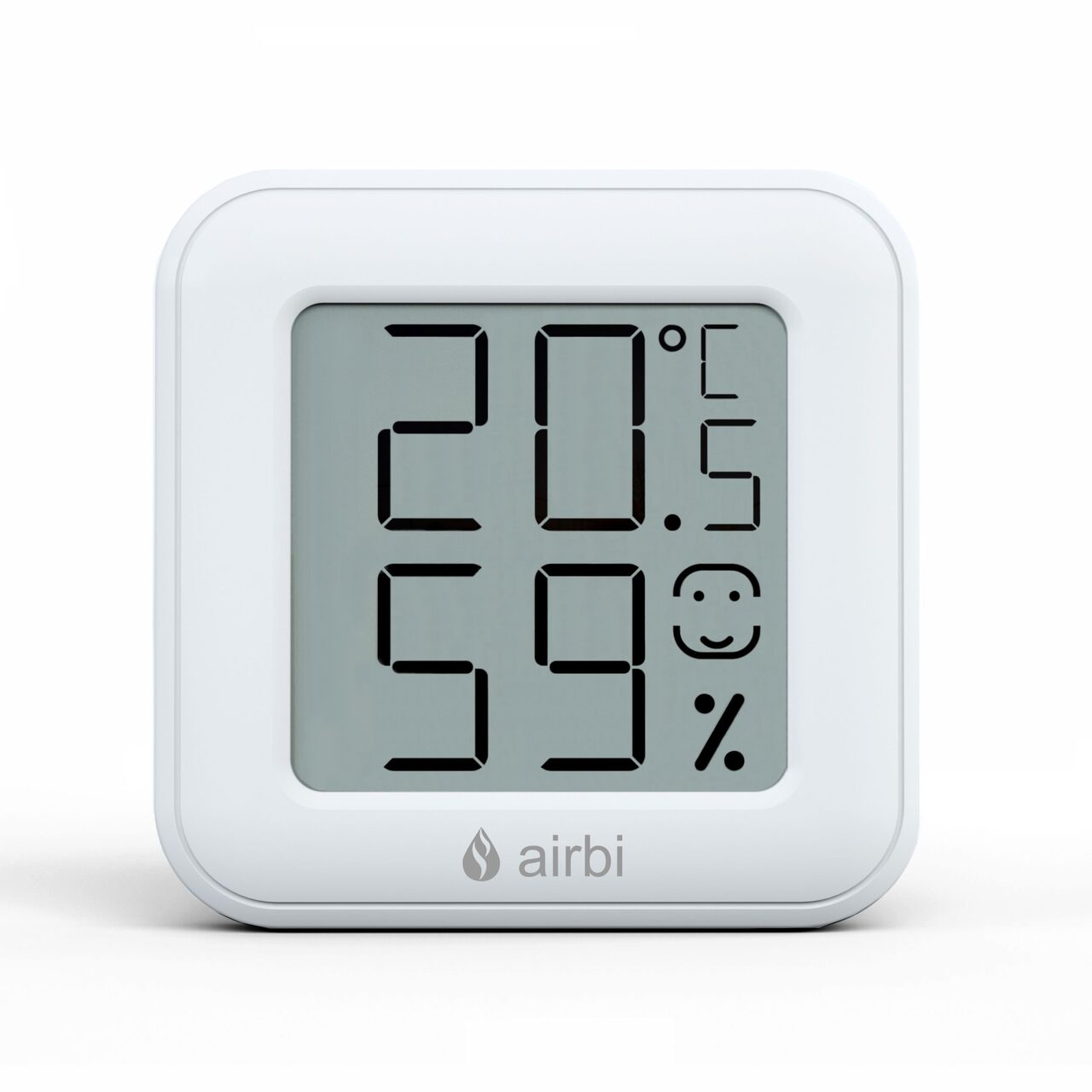 Termometrul digital Airbi SMILE cu higrometru incorporat masoara temperatura camerei in intervalul -20 °C pana la +60 °C si umiditatea camerei in intervalul 20% pana la 95%. Afisajul este impartit in doua jumatati, partea superioara arata temperatura, partea inferioară arata umiditatea masurata si o fata zambitoare ce semnalizeaza calitatea climatului din camera. In plus, dispozitivul memoreaza si valorile MAXime/MINime masurate de la ultima resetare.