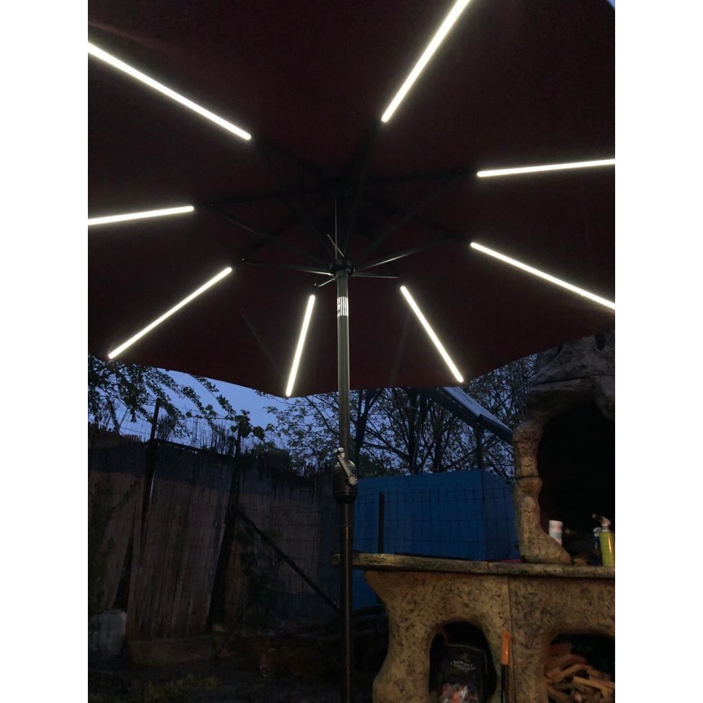 Marele avantaj al acestei umbrele de soare este incarcarea solara, opt becuri LED situate in interiorul partii superioare.